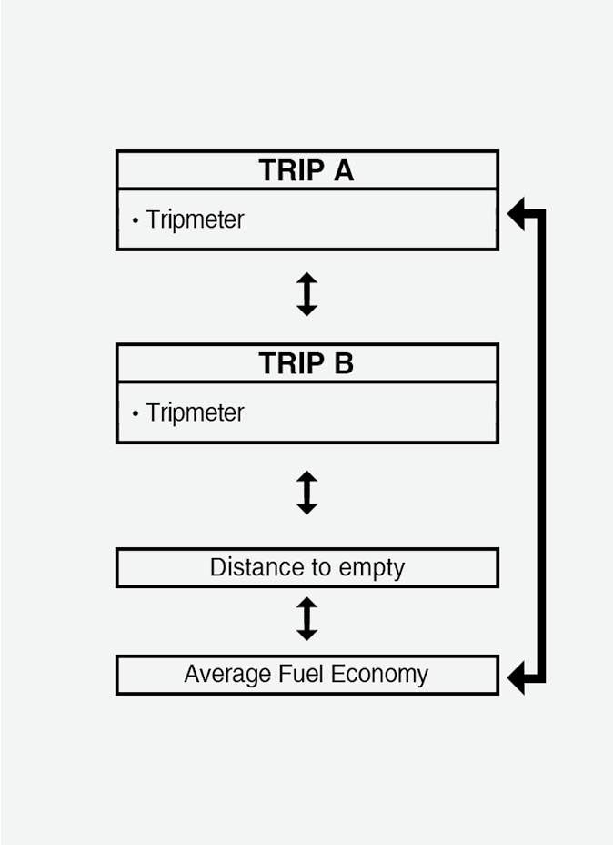 Если расчетное расстояние составляет менее 1 км (1 миля), то запас хода по топливу на дисплее маршрутного компьютера отображается как «---».