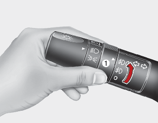 Включить задний противотуманный фонарь можно при включенных передних фарах или при включенных передних противотуманных фарах и габаритных огнях, повернув переключатель задних противотуманных фонарей (1) в положение «ON» (Вкл.).
