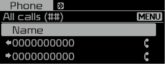 Нажмите кнопку [PHONE] (Телефон). ▶ Выберите [Call history] (История звонков).