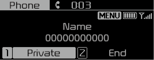 Private (Приватный режим): переключение голосового звонка с системы громкой связи автомобиля на устройство с Bluetooth®.