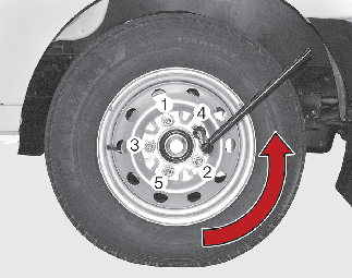 Затяните колесные гайки, полностью опустите автомобиль на землю и плотно зафиксируйте гайки. Плотно затяните колесные гайки по схеме «
