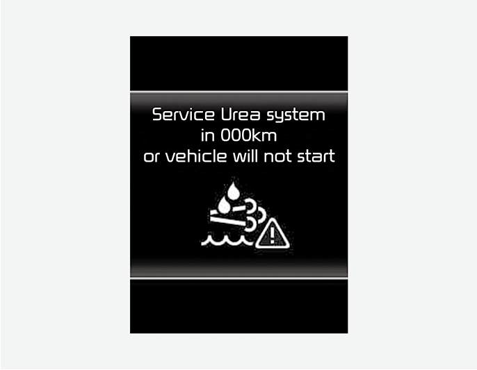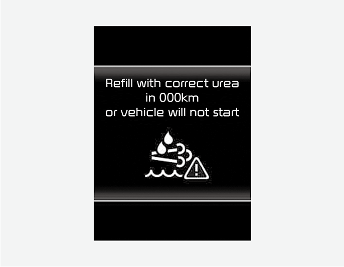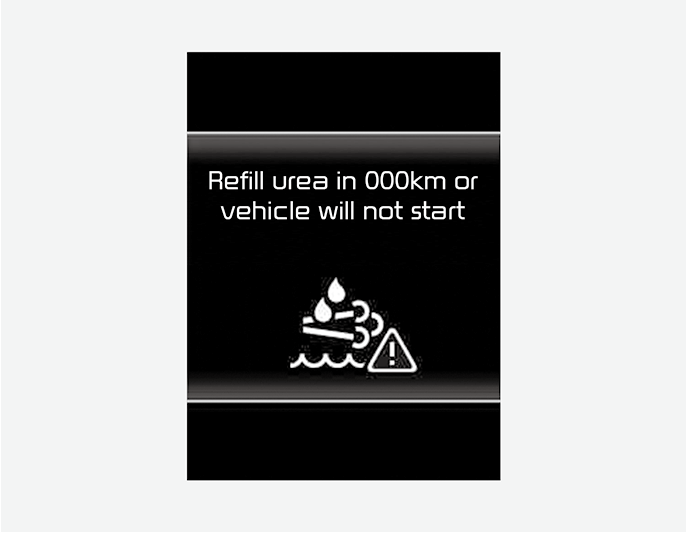 слишком низкий, появляется предупреждающее сообщение «Refill Urea in 000km or vehicle will not start» (Долейте мочевину через