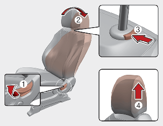Если наклонить вперед спинку сиденья с поднятым подголовником и подушкой, подголовник может касаться солнцезащитного козырька или других частей автомобиля.