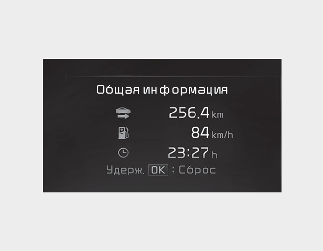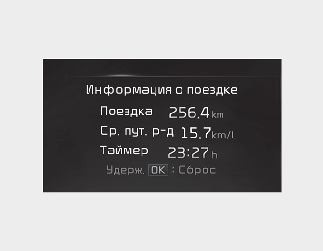 Если после отображения информации о поездке нажать кнопку «OK», удерживая ее более 1 секунды, информация будет обнулена.