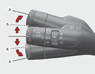 • Слегка поверните рычаг включения указателей поворота и удерживайте его в положении (B).