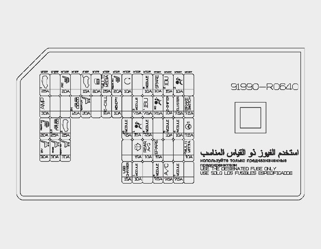 Не все описания панели предохранителей, приведенные в данном руководстве, могут относиться к вашему автомобилю. Информация была точной на момент печати. При осмотре панели предохранителей в автомобиле см. табличку со сведениями о панели предохранителей.