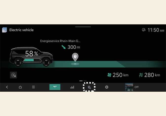 Na obrazovke infotainment systému vyberte ikonu, položku Plánované nabíjanie a cieľovú teplotu. |