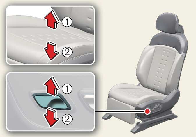 Stlačením spínača nastavenia podpory sedacieho vankúša smerom nadol (2) spustíte podporu sedacieho vankúša nadol.