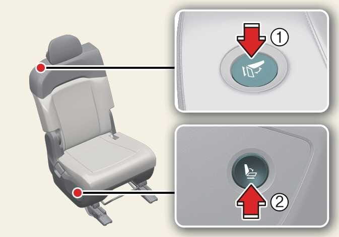 Po stlačení spínača sklápania (1 alebo 2) sa operadlo sedadla nakloní dopredu a sedadlo sa posunie.