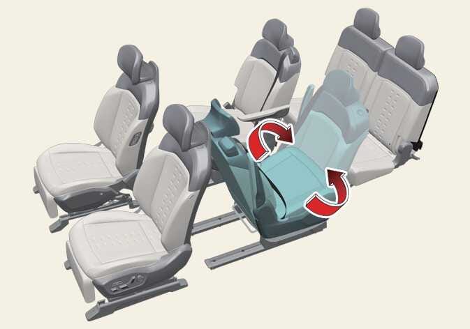 Ak sedadlo otočíte smerom dovnútra vozidla, otočí sa o 180 stupňov a zafixuje sa smerom dozadu. Ak sedadlo otočíte smerom von z vozidla (k dverám), môže sa otočiť o 90 stupňov, ale nie je fixované.