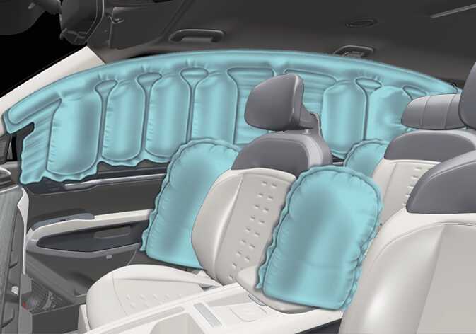 Predné airbagy sú navrhnuté tak, aby sa nafúkli pri prednej zrážke v závislosti od intenzity, rýchlosti a uhlov nárazu čelnej zrážky. |