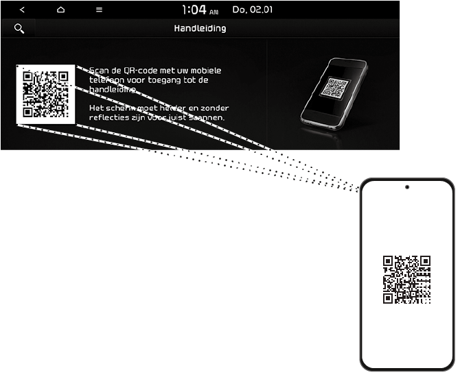 Scannen van de QR-code: Druk op [SETUP] > [Algemeen] > [Systeeminfo] > [Handleiding]. Scan de QR-code en tik op de URL in de QR-code om naar de webpagina te gaan.