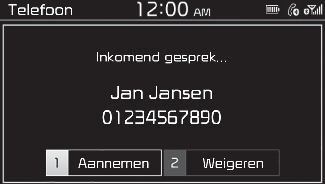 U kunt Bluetooth gebruiken om handsfree te telefoneren. De oproepinformatie wordt weergegeven op het systeemscherm en het voeren van het gesprek vindt plaats met behulp van de ingebouwde microfoon en luidsprekers van de auto.