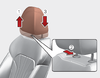 Para bajar el reposacabezas, pulse y mantenga pulsado el botón de liberación (2) en el soporte del reposacabezas.