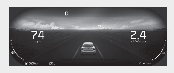 Puede cambiar el tema seleccionando "Vehicle (Vehículo) →Instrument Cluster Setting (Configuración del tablero de instrumentos) →Theme Selection (Selección de tema)" en el menú.