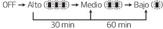 Cada vez que se pulsen las palancas o el interruptor, el ajuste de la temperatura del asiento cambiará como se indica a continuación: