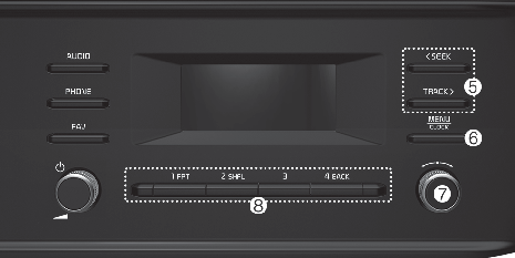 Mientras busca girando el mando, pulse para seleccionar la pista/archivo actual (excepto para el modo de audio Bluetooh).