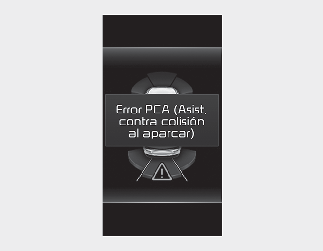 Si hay un problema con la asistencia de prevención de colisión al estacionar marcha atrás u otras funciones relacionadas, aparecerá un mensaje de advertencia y la función se desactivará automáticamente. Solicite la revisión del vehículo en un distribuidor Kia autorizado.