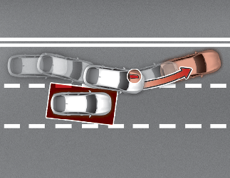 Wenn beim Spurwechsel oder beim Ausfahren aus einer Parklücke ein Kollisionsrisiko besteht, hilft der Totwinkel-Kollisionsvermeidungsassistent außerdem durch die Steuerung der Differenzialbremsung, eine Kollision zu vermeiden.