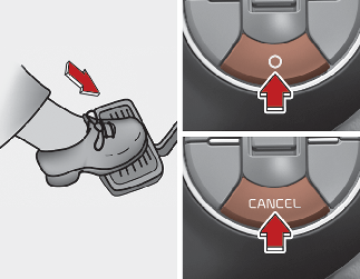 Enfoncez la pédale de frein et appuyez simultanément sur le bouton O/CANCEL (annuler) lorsque le véhicule est immobilisé.