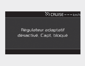 Si le radar ou son couvercle est sale ou obstrué par des corps étrangers, le message ci-dessus s'affiche pendant un certain temps.
