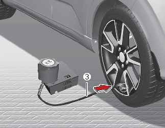 Lorsque la roue et le pneu sont endommagés, ne pas utiliser le kit anti-crevaison pour votre sécurité.