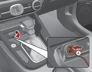 Connecter le compresseur à la prise de courant du véhicule en utilisant le câble et les connecteurs (4).