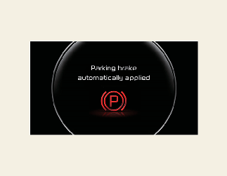 في هذه الحالات، يضيء مصباح تحذير الفرامل، ويتغير لون مُبين AUTO HOLD (التوقف الآلي) من الأخضر إلى الأبيض، ويصدر صوت تحذير، وتظهر رسالة لإخطارك بالتعشيق الآلي لفرامل اليد الإلكترونية. قبل القيادة مرة أخرى، اضغط على دواسة فرامل القدم، وتحقق من المنطقة المحيطة بالسيارة، وحرر فرامل اليد يدويًا باستخدام مفتاح فرامل الانتظار الإلكترونية.