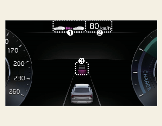يتم عرض مسافة المركبة الأمامية على لوحة العدادات وفقًا للمسافة الفعلية بين سيارتك والمركبة التي أمامك.