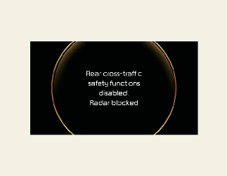 في حال حدوث ذلك، سوف تظهر رسالة التحذير "تم تعطيل وظائف نظام أمان المركبة أثناء الرجوع. تم حظر الرادار" (أو"تم تعطيل وظائف نظام أمان المركبة أثناء الرجوع. تم حظر الرادار") على لوحة العدادات. لكن لا يعد ذلك تعطل نظام المساعدة على تجنب الاصطدام أثناء الرجوع.