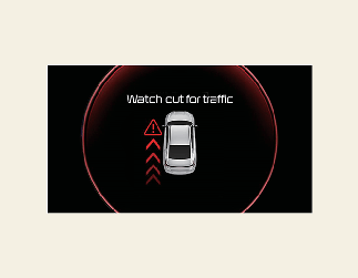 سوف يومض ضوء التحذير الموجود على مرآة الرؤية الجانبية وستظهر رسالة التحذير "Watch (out) for traffic (انتبه إلى حركة المرور)" على لوحة العدادات، وسيصدر تحذير صوتي.