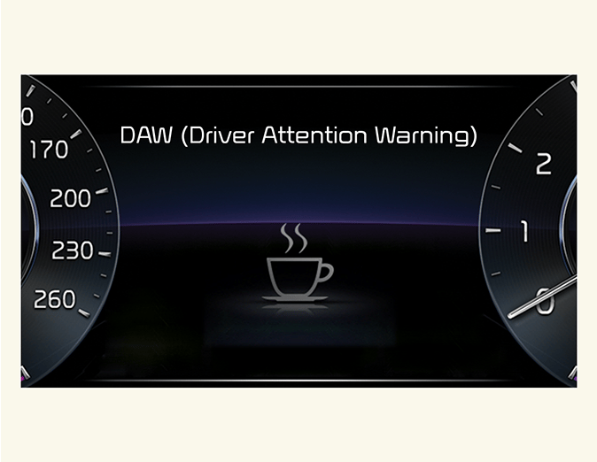 الشاشة الرئيسية > نظام مساعدة السائق > نظام التحذير بشأن تشتت انتباه السائق (DAW) > تشغيل نظام التحذير بشأن تشتت انتباه السائق
