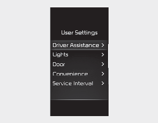 若要變更駕駛輔助設定,則在顯示駕駛輔助模式時,按住方向盤上的 OK 按鈕 1 秒以上。