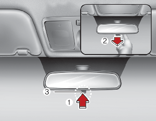 Pull the day/night lever (3) toward you (2) to reduce the glare from the headlights of the vehicles behind you during night driving.