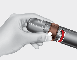 Fog lights are used to provide improved visibility when visibility is poor due to fog, rain or snow, etc. The fog lights will turn on when the fog light switch (1) is turned on after the parklight is turned on.