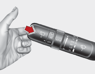In the O (Off) position, pull the lever gently toward you to spray washer fluid on the windscreen and to run the wipers 1-3 cycles.