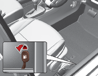 The fuel filler door must be opened from inside the vehicle by pulling up on the fuel-filler lid opener located on the front floor area on the driver’s seat.