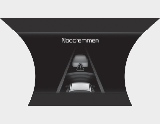 Om de bestuurder te waarschuwen voor het noodremmen, verschijnt de waarschuwingsmelding 'Emergency Braking' ('Noodrem') op het instrumentenpaneel, klinkt een waarschuwingssignaal.