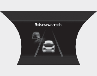 Om de bestuurder te waarschuwen voor een botsing, verschijnt de waarschuwingsmelding Collision Warning (Botsing waarsch.) op het instrumentenpaneel, klinkt een waarschuwingssignaal.