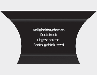 Als dit gebeurt, verschijnt de waarschuwingsmelding 'Blind-Spot Safety system disabled. Radar blocked' (Dodehoekveiligheidssysteem uitgeschakeld. Radar geblokkeerd) op het instrumentenpaneel.