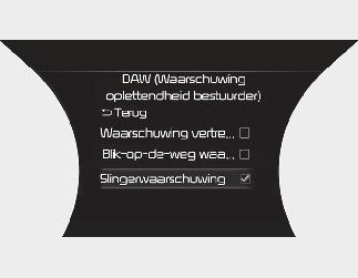 Instellingen Driver Attention Warning (Waarschuwing oplettendheid bestuurder)
