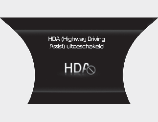 Indien de handen van de bestuurder nog steeds niet op het stuur zijn na de waarschuwing, verschijnt de waarschuwingsmelding 'Highway Driving Assist (HDA) geannuleerd' en wordt het Highway Driving-systeem automatisch geannuleerd.