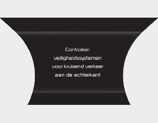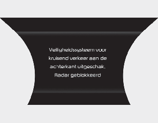Als dit gebeurt, wordt Rear Cross-Traffic Safety uitgeschakeld. Radar blocked' ('Functies Rear Cross-Traffic Safety-systeem uitgeschakeld. Radar geblokkeerd') weergegeven op het instrumentenpaneel.