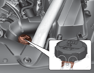 Zorg na het bijvullen van de koelvloeistof dat de koelvloeistofdop goed dichtgedraaid is.