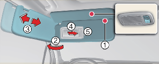 Para utilizar el espejo de cortesía, tire hacia abajo de la cubierta del espejo (4).