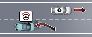 La función de cambio de carril con tráfico lateral ayuda a evitar una colisión con el vehículo que lo precede en el carril contiguo al cambiar de carril ayudando al conductor a mover el volante.