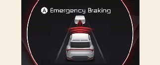 Para avisar al conductor de que se asistirá con la frenada de emergencia, se mostrará el mensaje de advertencia, se emitirá una advertencia acústica y vibrará el volante. La asistencia a la frenada se activará y ayudará a evitar que la colisión con un vehículo, peatón o ciclista.