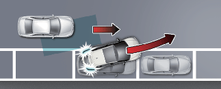 Al conducir hacia delante para salir de una plaza de estacionamiento, si la Asistencia de prevención de colisión en el punto ciego considera que existe un riesgo de colisión con un vehículo que se aproxima por el punto ciego, la función ayudará a evitar la colisión accionando el freno.
