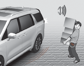 If you are positioned in the detecting area (within 12 ~ 24 in [30 ~ 60 cm] from the sliding door) carrying a smart key, the hazard warning lights will blink and chime will sound to alert you the smart key has been detected and the sliding door will open.