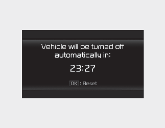To prevent carbon dioxide poisoning, the Vehicle Auto Shut-off system is designed to automatically turn the engine off approximately 60 minutes later to reduce fuel and energy consumption of the vehicle. The timer appears on the LCD display approximately 30 minutes before it turns off automatically.